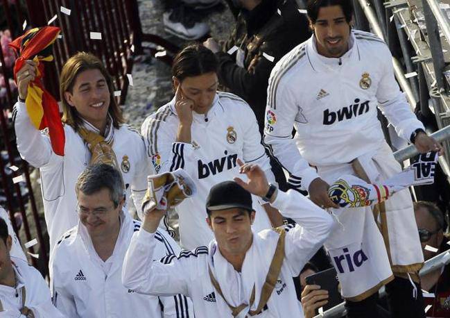 Un autobus decappottabile ha accompagnato i calciatori del Real Madrid dallo stadio Bernabeu fino al monumento centrale della capitale; migliaia di tifosi hanno seguito a piedi il tragitto del pullman, aggiungendosi alla scorta della polizia a cavallo. Nell’epicentro della festa anche i calciatori hanno dato seguito ai festeggiamenti dei supporters, unendosi al grido di Campeones, Campeones!