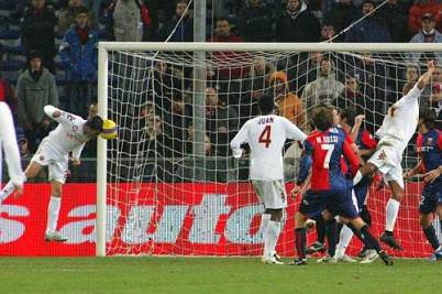 Nell’anticipo della tredicesima giornata del campionato 2007/2008 la Roma è impegnata a Marassi contro il Genoa di Gasperini, ma guarda anche all’imminente trasferta di Champions League a Kiev che potrebbe dare ai giallorossi l’accesso agli ottavi di finale con una giornata di anticipo. Visto l’impegno ravvicinato Spalletti schiera una formazione in parte rimaneggiata, ma senza rinunciare al suo solito calcio armonico e propositivo: ne esce un primo tempo largamente dominato dalla Roma, che però non concretizza e nella ripresa inizia a lasciare campo al Genoa. I padroni di casa prendono pian piano coraggio e hanno con Paro la palla gol che potrebbe sbloccare il risultato, ma la conclusione del centrocampista scuola Juventus si schianta sul palo con Doni battuto. Sei minuti più tardi Vucinic riporta in parità anche il conteggio dei legni colpiti, con un colpo di testa che si infrange sulla traversa dopo un morbido cross di Mancini. Quando lo 0-0 sembra ormai impossibile da scalfire, a pochi secondi dallo scadere del 90’ Pizarro centra una punizione dal vertice destro dell’area di rigore e Panucci si trova incredibilmente a staccare da solo in area di rigore: l’ex di turno non perdona e schiaccia di testa in rete per il gol che firma la vittoria corsara della Roma al Ferraris.