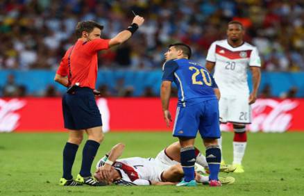 E la conferma è arrivata ieri, giorno della finalissima al Maracanà. Iniziamo però salvando i due esperti e sicuramente affidabili assistenti di linea, i signori Stefani e Faverani, autori di una prestazione assolutamente di livello per chiamate giuste e difficili (che freddezza annullare il gol di Higuain). Rizzoli non ha assolutamente mantenuto tale ritmo decisionale, cominciando la gara anche con un giusto piglio, ammonendo le prime scorrettezze e confrontandosi personalmente con i protagonisti in campo. Ma quando il gioco si fa duro, l’arbitro italiano si tira indietro e comincia a sbagliare di tutto: l’entrataccia di Howedes a martello resta impunita, l’argentino Aguero, già sanzionato, rompe uno zigomo a Schweinsteiger, ma viene clamorosamente graziato. Mascherano, anch’egli ammonito da vari minuti, nei supplementari comincia a picchiare a destra e a manca, sapendo che uno spaurito e stralunato Rizzoli neanche lo redarguirà più.