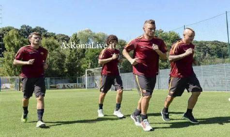 Ore 11:2o A mano a mano che terminano i test fisici in palestra, i giocatori raggiungono il campo per aggregarsi al lavoro dei compagni. Mehdi Benatia, oltre a Emanuelson, Florenzi, Keita e Destro, sono ora in gruppo assieme a Borriello, De Sanctis e Castan. Gli altri calciatori che si erano allenati fin qui si sono invece allontanati dal terreno di gioco.