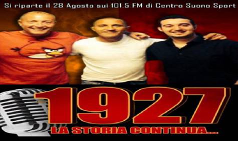 La storica trasmissione, da più di quindici anni, accompagna quotidianamente i pomeriggi dei tifosi romanisti parlando di calcio col sorriso sulle labbra. Completano la squadra di 1927, Fabio Petruzzi, Federica Afflitto, Tiziano Carmellini (Caposervizi Sportivi de Il Tempo) e Massimo Ciccognani (Editorialista de il Tempo), come inviato confermatissimo Emiliano Di Nardo che seguirà live tutti gli eventi che riguarderanno la Roma fuori e dentro il campo.