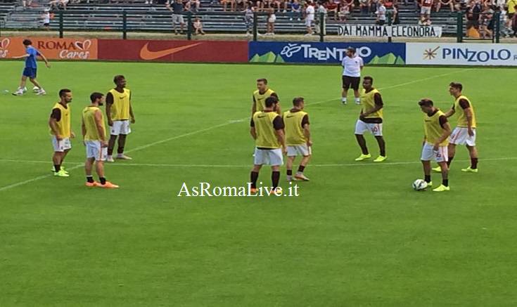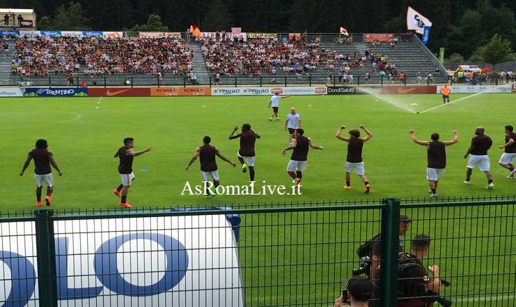 Ore 16:50 I giocatori rientrano negli spogliatoi. Tra pochi minuti scenderà in campo la prima Roma della stagione 2015-2016. Nell’ultima ora è quasi raddoppiato il numero dei tifosi presenti: circa 3500 sulle tribune di Pinzolo.