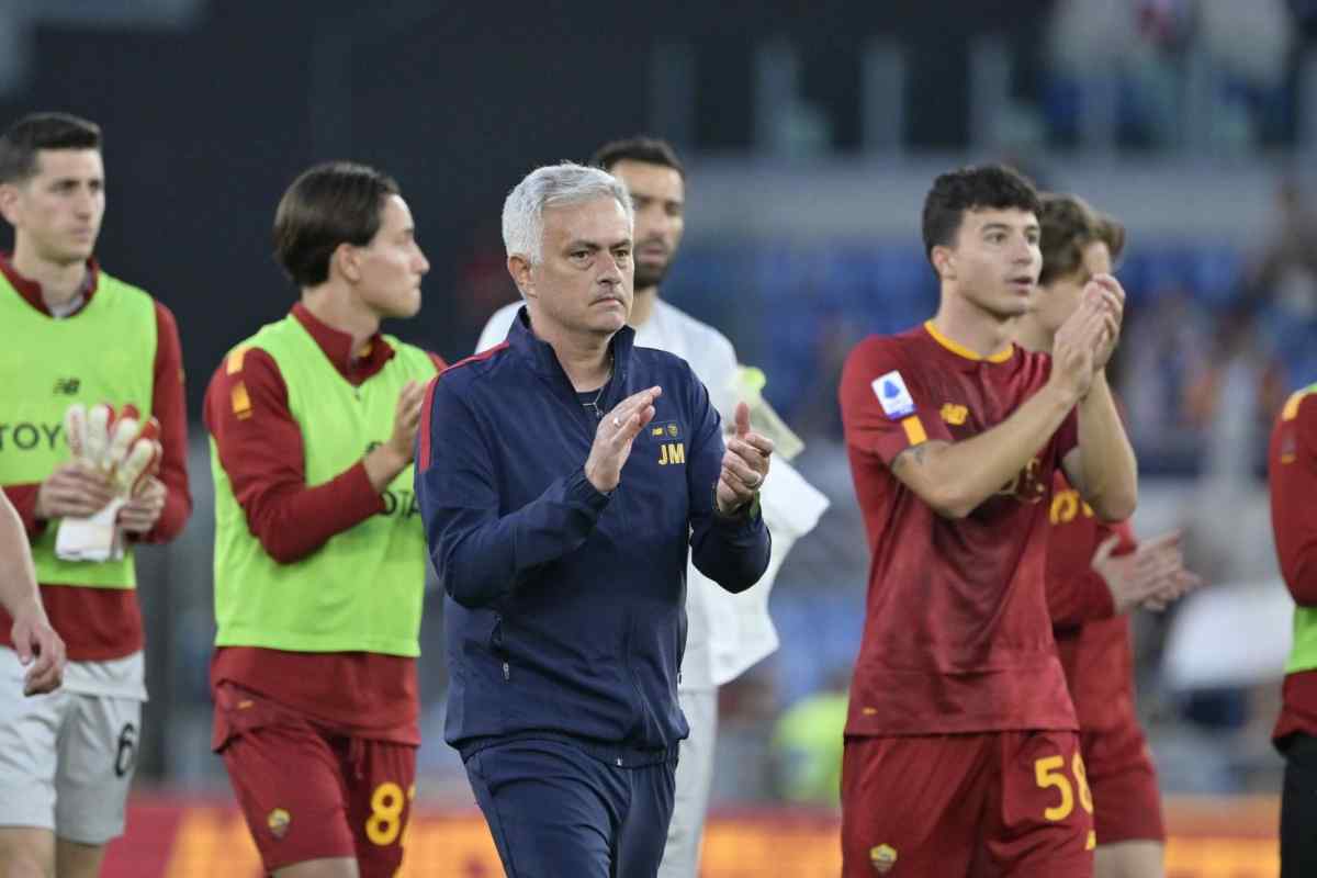 Il saluto alla Curva dopo il match. E dopo aver tenuto a rapporto la quadra in mezzo al campo, per farsi vedere da tutti. Mourinho non lascia nulla al caso: ha parlato ai suoi uomini dentro il prato verde dell’Olimpico. Un Olimpico che lo ha acclamato durante il match e che lo ama. “Fino all’inferno con Mou” si legge sui social. E non può essere altrimenti.